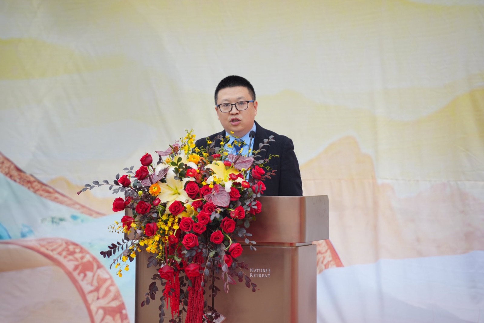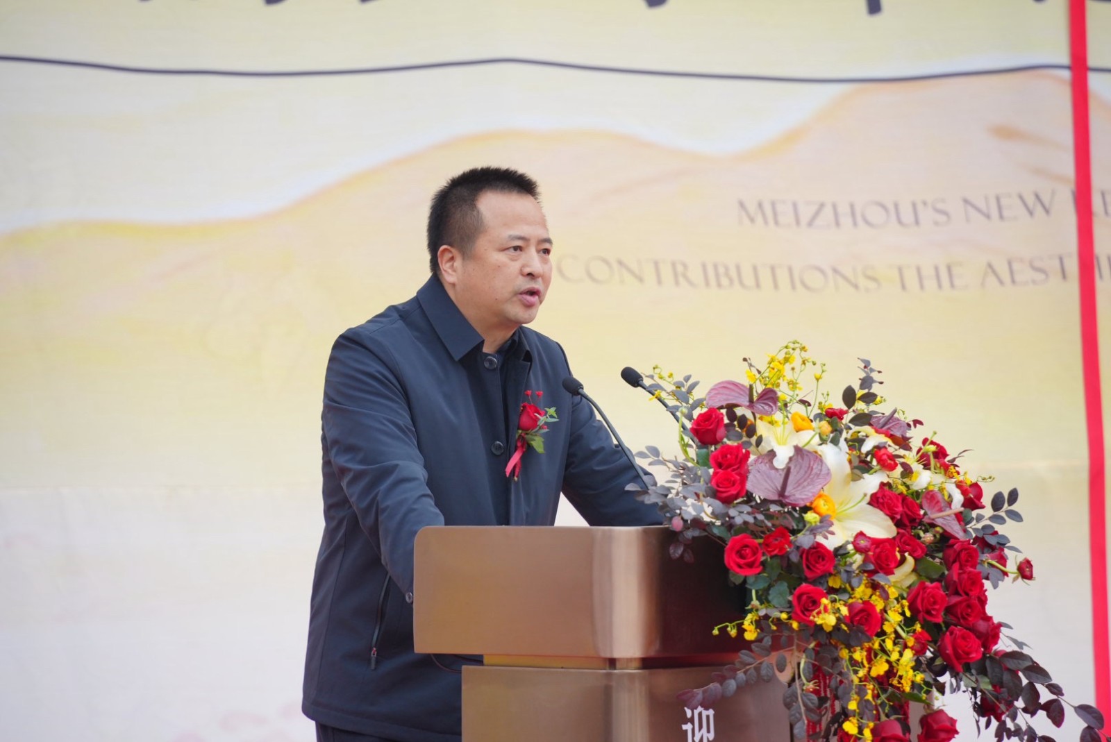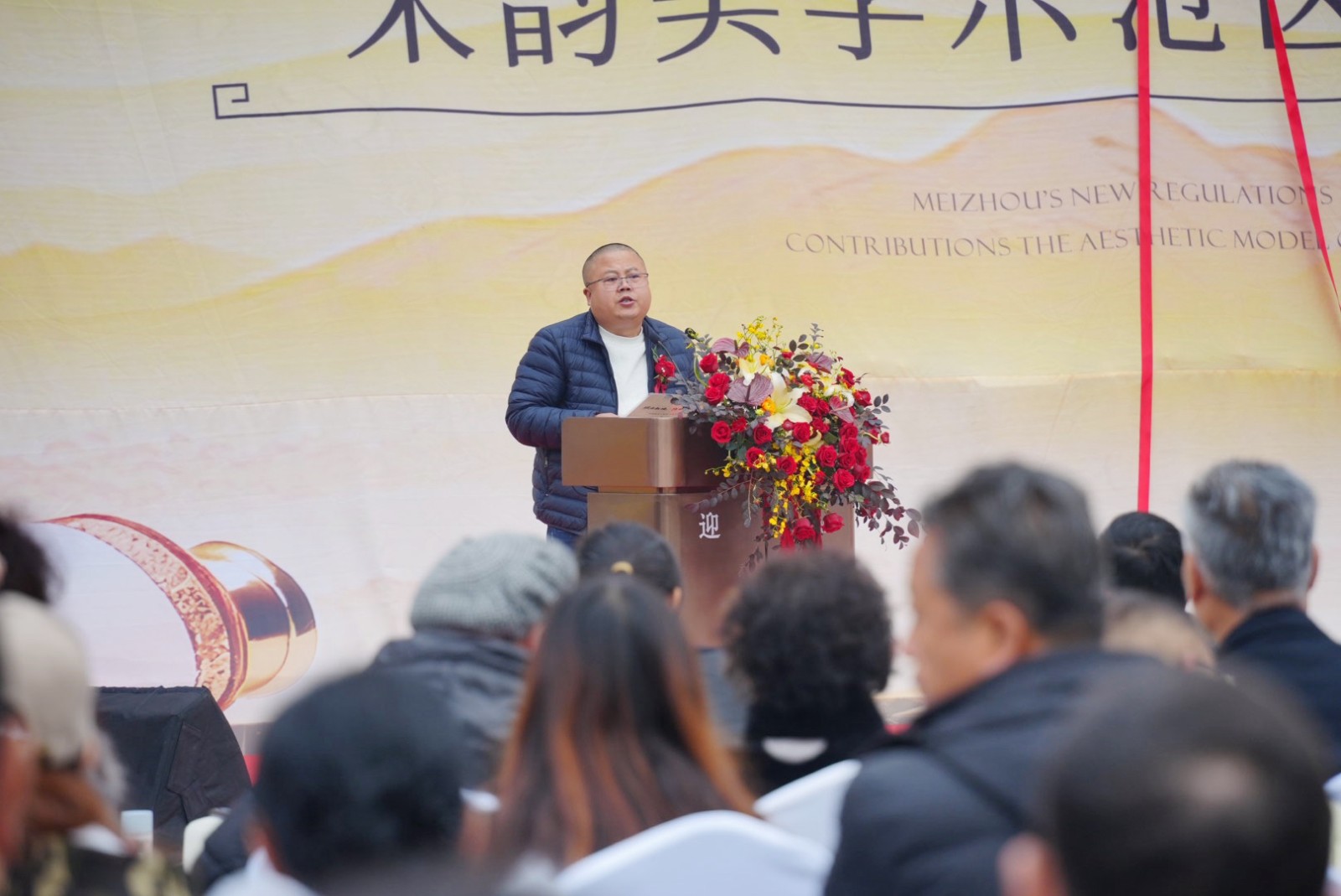 紧随其后,在领导致辞环节,域尚·璞隐项目总经理梅永康先生首先登台,从项目立意、设计理念与匠心营造等角度,阐释了对宋韵美学的当代诠释与追求。随后,眉山市房地产服务中心主任李洪庆先生从城市发展的高度,肯定了项目与眉山文脉相融共生的深远价值。而媒体代表眉山安家网聂楠先生则从观察者视角,分享了对理想人居的深刻理解,勾勒出现代人对雅致生活的美好向往。